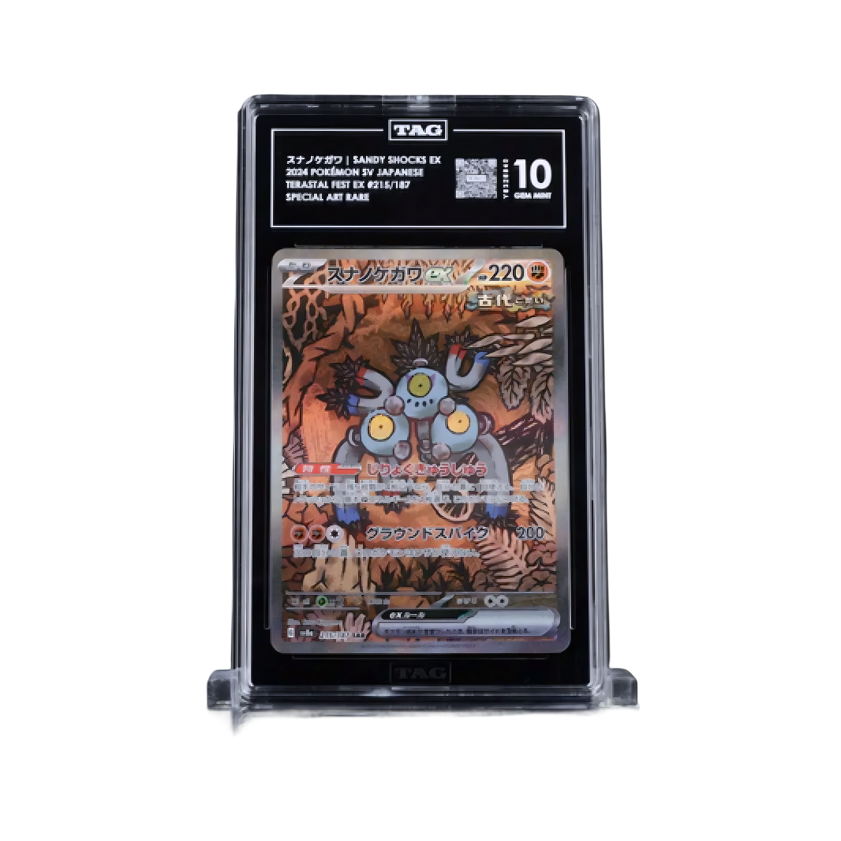 The SANDY SHOCKS EX – 2024 Pokémon Terastal Fest EX 215/187 Special Art Rare | TAG 10 is a centerpiece collectible that blends artwork, rarity, and investment potential into one. Don’t miss the opportunity to secure this stunning Japanese Pokémon card and elevate your collection with a piece of Scarlet & Violet history.